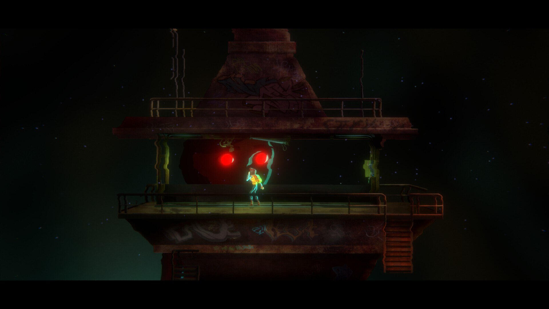 Because I was so deeply involved in the project’s design and mechanics, there are a lot of elements across the game that bear my fingerprints. But the aspects of Aiku I am proudest of are mostly small, unique moments of player experience I arranged—for example, the blocking/lighting of the generator explosion and subsequent power failure. I designed all of the power puzzles, and though they are intended to be easy and accessible, I strove to communicate their rules clearly using environmental conveyances like placement and composition rather than words. So while I spent a large amount of time scripting and grayboxing and so on, I tried to make every space and mechanic help guide the player’s progression of understanding, and allow for plenty of little “magic moments” along the way.
