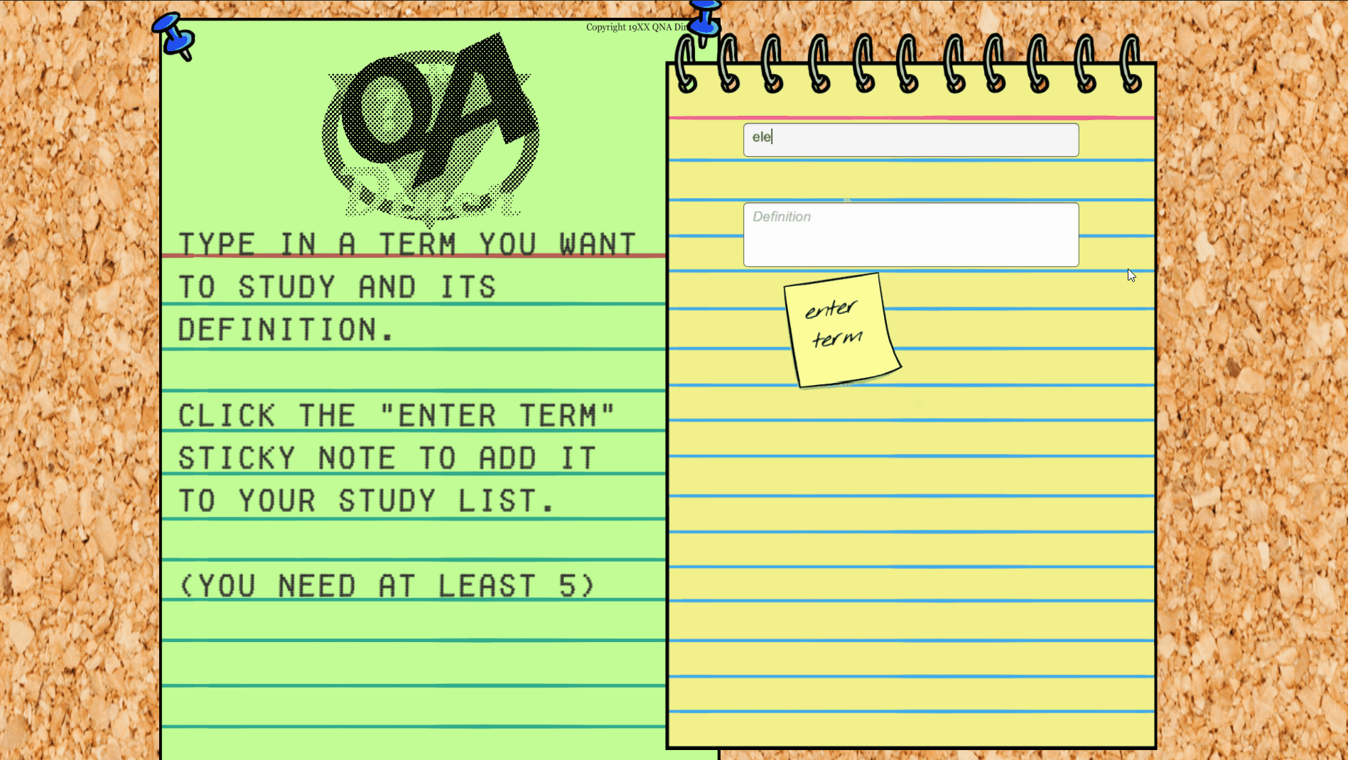 This one is supposed to be like a study tool: you enter a bunch of terms and definitions, then those terms and definitions get parsed into customer orders and overlaid on images of food that you can bring to the customers. I thought it was cute!