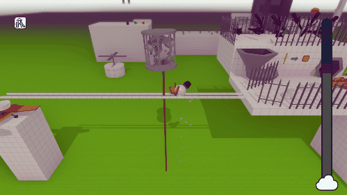 So naturally, I worked on a lot of fun features and mechanics that didn’t make it in! My favorite example is a stick. It turns out there are lots and lots of ways to play with a stick: you can pick it up, drop it, pick it up while running, aim it, throw it as hard as you can, toss it lightly, throw it while running, throw it directly upwards, catch it, drop it then catch it again before it hits the ground, etc. etc. etc. etc. Trying to allow for all this flexibility using one button and a thumbstick—and tuning each obscure use case to feel meaningfully, organically expressive—and being given a generous time budget to do so—is like dying and going to game designer heaven.